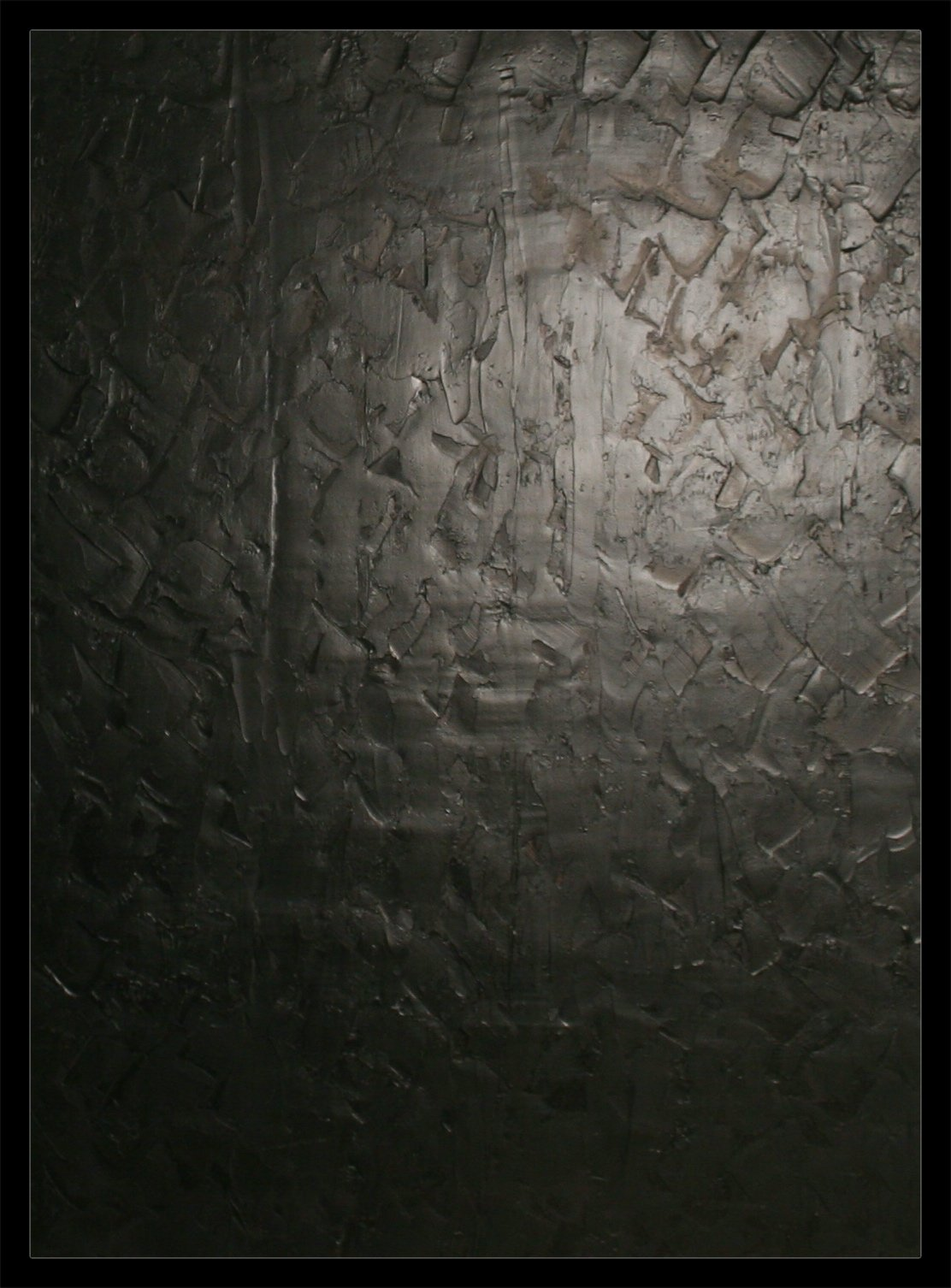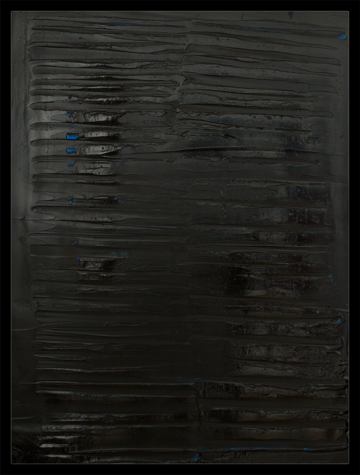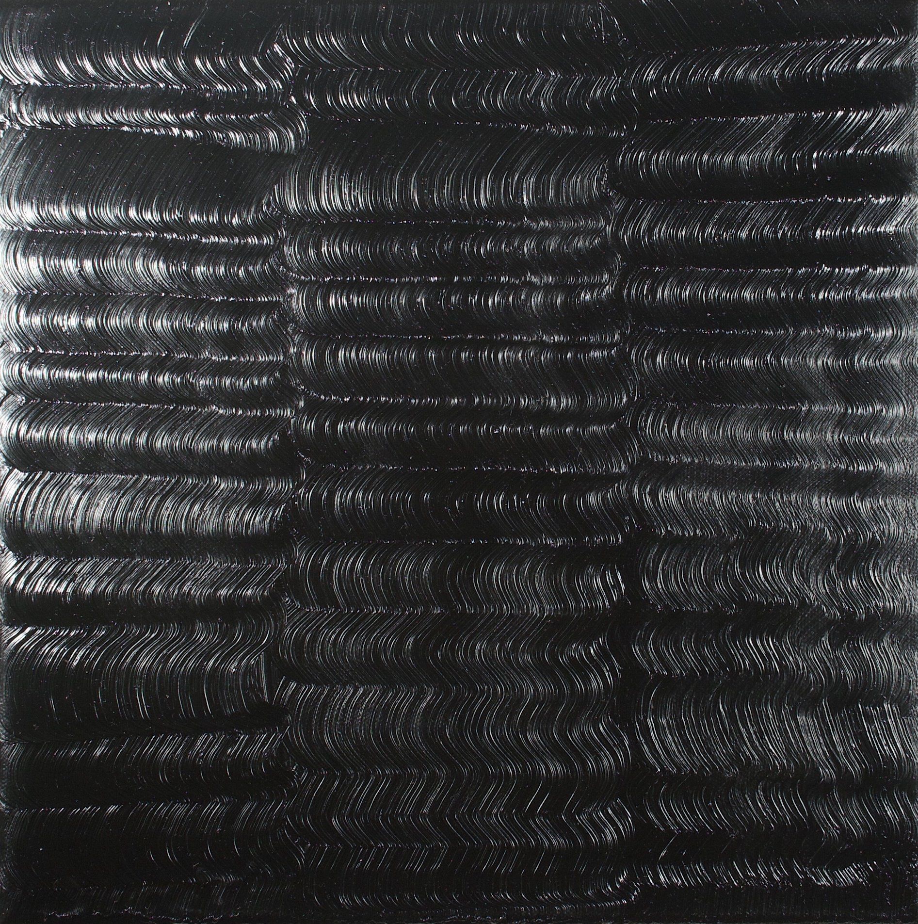 I then create and bury my layers of inverted paint. Then, like an archaeologist, I scrape the surface, explore to reveal in these deep blacks, these past instants and (re)discover my memories. While sculpting these silent dark blacks, I freeze a maze of organized signs, scarifications, traces, scars, or sensations, some rhythmic or slow, some precise or uncertain, not by the color anymore but by the material or its thickness.