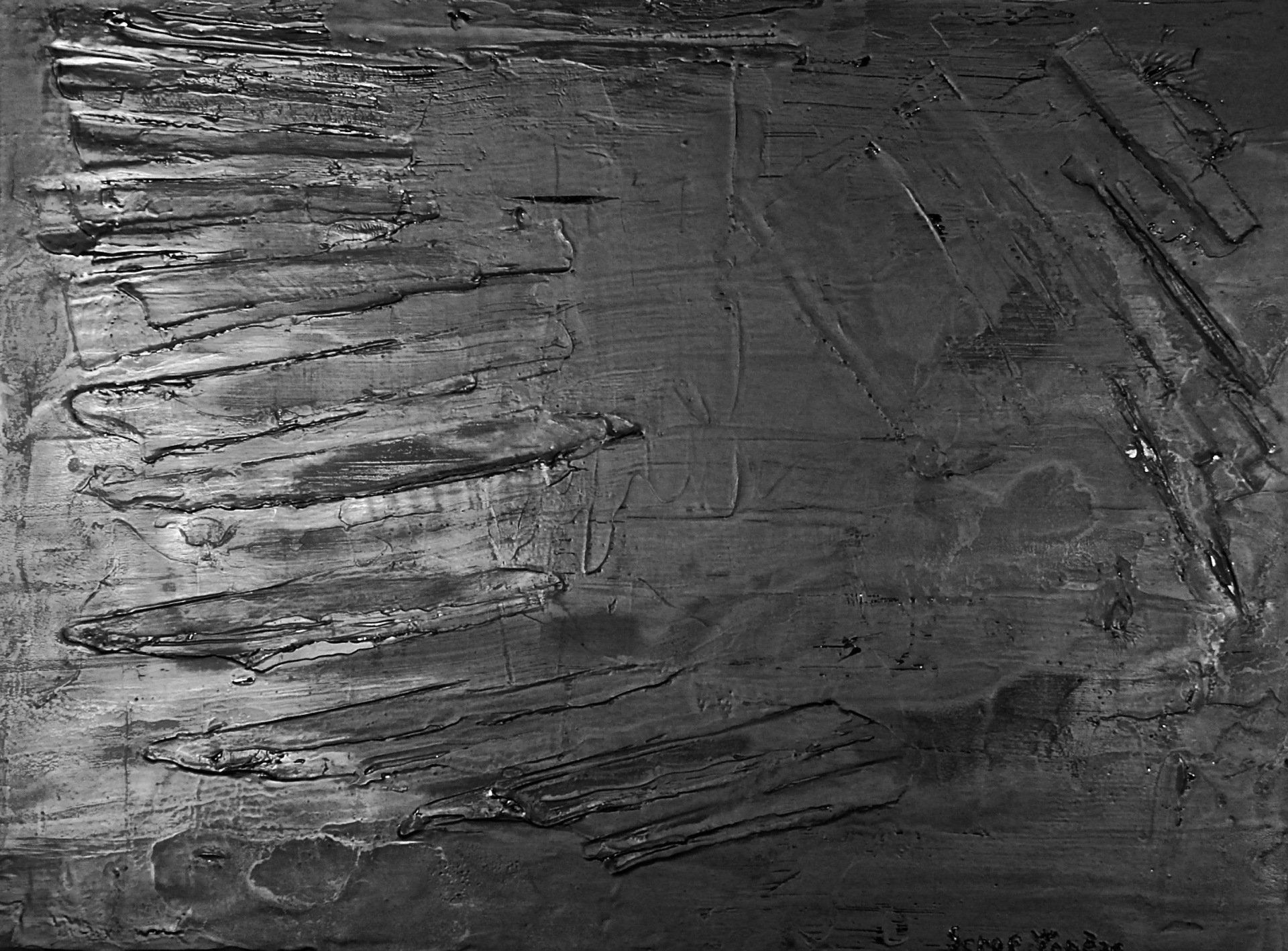 But the material can’t be worked with simple paint brushes or brushes anymore. One can’t paint in a similar way anymore. This new evolution, this self questioning, compels you to reinvent everything. Create your own tools (Scrapers, scratches, metal blade, plexiglass polished on aluminium, brushes, etc...). To divert others such as: Threshold bars, tiler scrapers, flat metal rulers, ...
