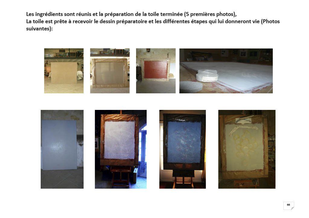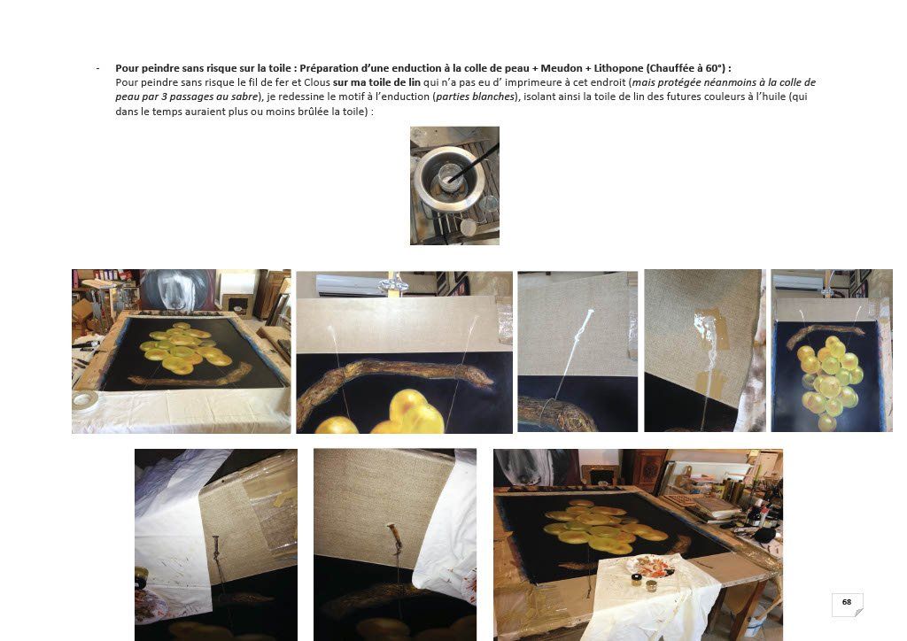 The majority of the canvases presented are made using old techniques "to make the paint durable"... This sheet presents the method for preparing the supports with the greatest care, so as to make the work unalterable.