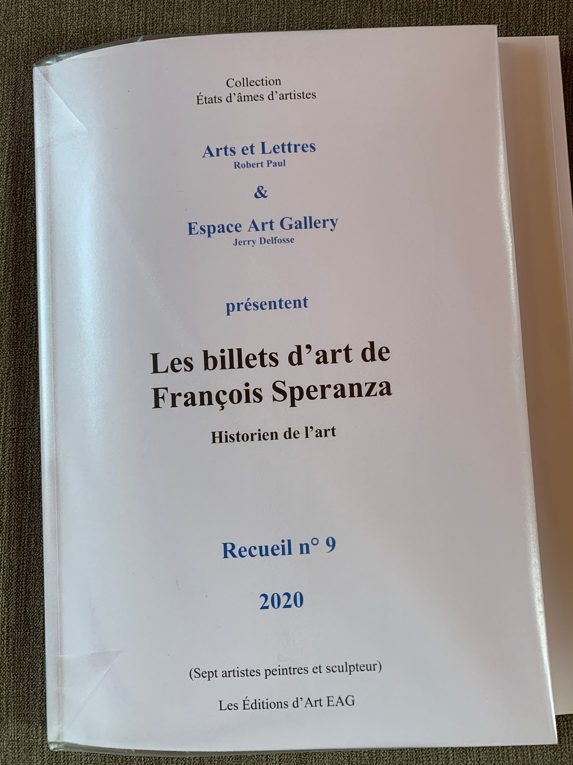 Le 27 mai 2023 à Bruxelles, cérémonie de remise de la publication du « Billet d’art du Critique d’arts et historien de l’art, François Speranza » (Éditions d’Art EAG – Bruxelles), à Serge Tenèze, concernant ses travaux sur la mémoire.